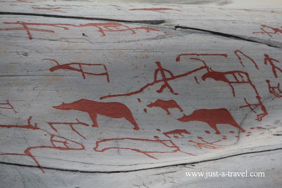 Położenie rysunków naskalnych jest rzeczywiście fenomenalne. Najstarsze z nich znajdują się w wyższej części fiordu, a najmłodsze w niższych warstwach. Ma to związek z procesem obniżania się linii wody. Z biegiem lat z wody wynurzały się coraz to nowe skały, nowsze rysunki powstawały poniżej starych. Najmłodsze rysunki mają ponad 2 tysiące lat.