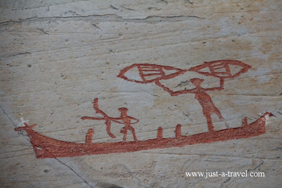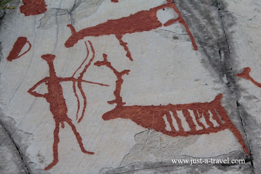 Większość rysunków w wyższej części fiordu jest malowanych na czerwono, aby łatwiej je można było rozpoznać. Ta część jest najczęściej odwiedzana przez turystów. Prawdziwą atrakcją jest jednak trasa do dolnych platform skalnych, na których podziwiać można oryginalne ryty bez barwnika, tak jak powstały w naturze.