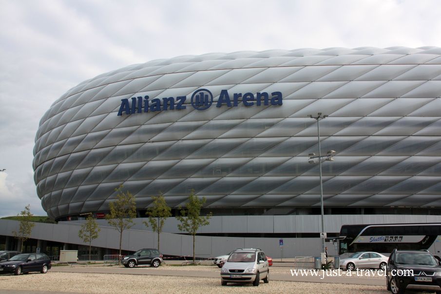 Wjeżdżających do Monachium od strony Norymbergi z daleka powita UFO – jeden z najnowocześniejszych stadionów piłkarskich na świecie, będący siedzibą FC Bayern München i TSV 1860. Stadion ten zbudowano z bardzo cienkich, foliowych poduszek napełnionych suchym powietrzem. Każda z poduszek może zostać oddzielnie podświetlona na biało, czerwono, bądź niebiesko. Po kolorze podświetlenia poznać można, jaka drużyna gra obecnie mecz na stadionie. Allianz Arena mieni się kolorem czerwony dla FC Bayern München, niebieskim dla TSV 1860 oraz białym dla gier neutralnych.