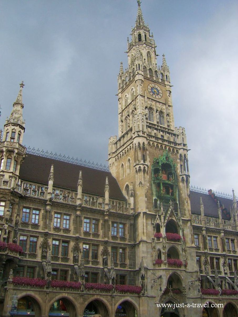 Codziennie o 11:00, 12:00 i 17:00 (od października do lutego tylko o 11:00 i 12:00) na centralnym placu miasta można obejrzeć sceny z jego historii. Na dwóch piętrach zegara ratusza uruchamiane są wtedy marionetki kuranta, przedstawiające dwa historyczne wydarzenia z życia Monachium: ślub Wilhelma V. z Renatą von Lothringen w 1568 r. oraz taniec bednarzy z 1517 roku, który wykonano, aby podnieść na duchu mieszkańców w czasie szalejącej wówczas epidemii dżumy.