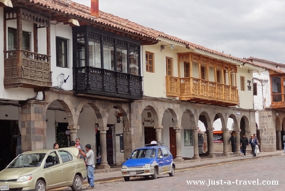 Plaza de Armas otaczają kolonialne kamienice z charakterystycznymi drewnianymi balkonikami. W większości z nich znajdują się restauracje, kafejki, bary i sklepiki z pamiątkami.