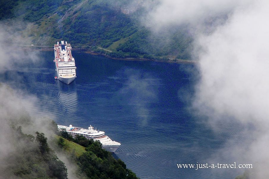 Na brzegu fiordu leży wioska licząca sobie ok. 300 mieszkańców, a przy jego brzegu trzeci, co do wielkości port statków wycieczkowych w Norwegii. Codziennie z nich na brzegi maleńkiej wioski wylegają tysiące turystów, więc można sobie wyobrazić, jak w godzinach szczytu pęka ona we szwach.