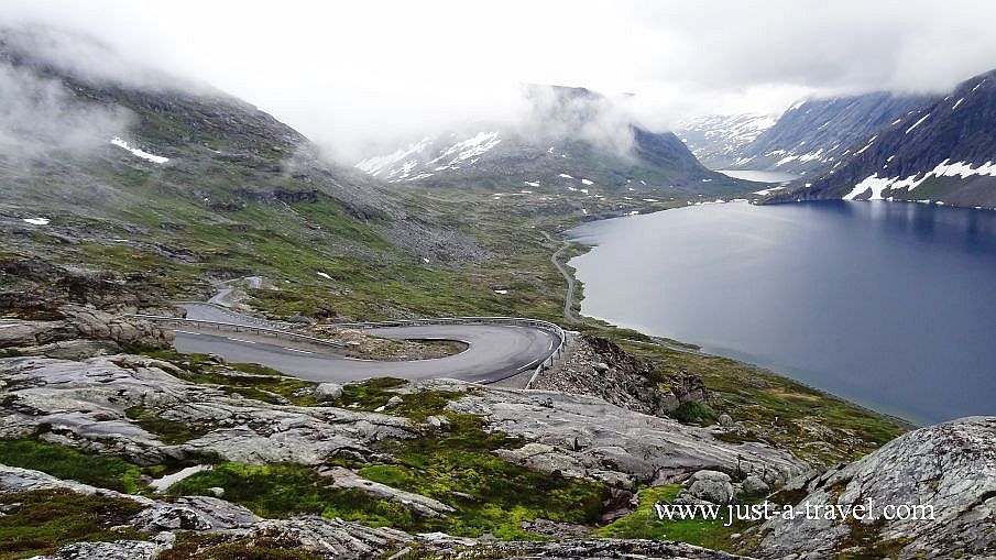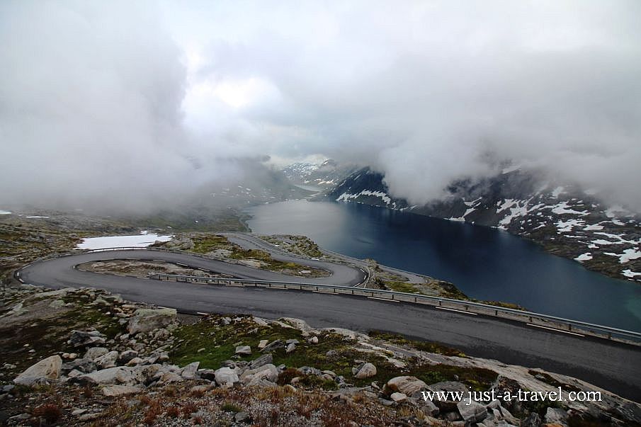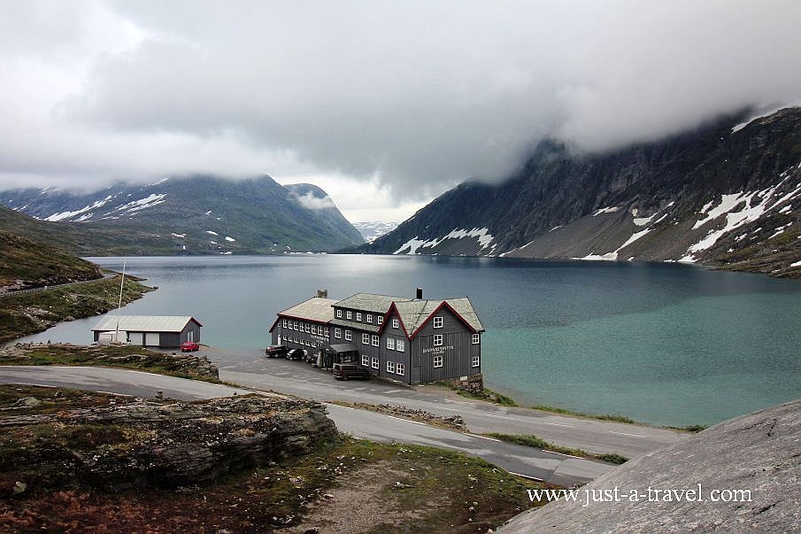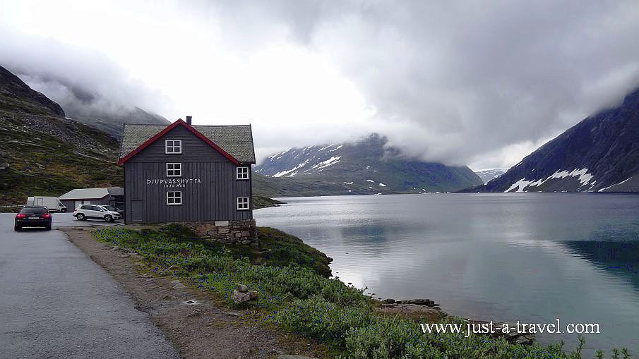 W okolicach fiordu jest jednak inne miejsce, które bardziej nas urzekło niż sam Geirangerfjorden. Wysoko w górach około 25 minut jazdy samochodem od fiordu na brzegu jeziora Djupvatn stoi chata Djupvasshytta, w której zatrzymaliśmy się na nocleg. Z chaty wiedzie kręta asfaltowa droga na szczyt góry Dalsnibba (1476 metrów n.p.m.). Jest to jedyna góra w Norwegii, na którą można wjechać samochodem.