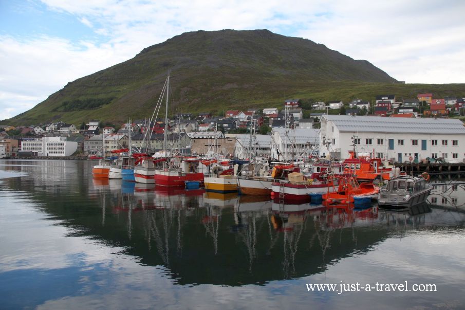 W końcu docieramy do Honningsvag. Miasteczko zdaje się znajdować w letargu. Opustoszałe ulice, leniwe łódki bujające się w porcie i kolorowe domki wspinające się po ścianach jednego ze wzgórz.
