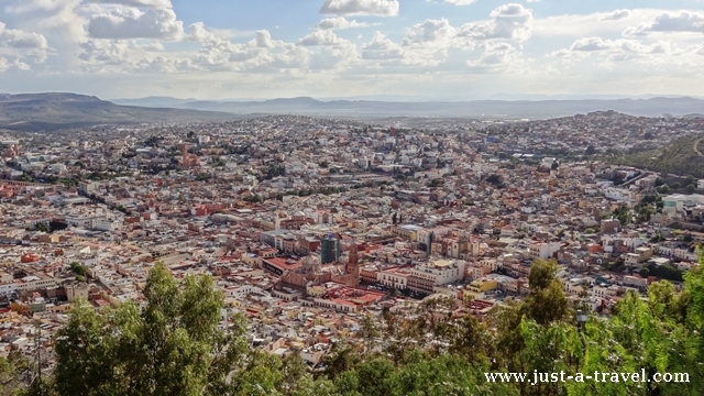 Miasto położone jest w wąwozie i otoczone masywami górskimi. Jeden z nich El Cerro de la Bufa był świadkiem słynnej bitwy o Zacatecas w 1914 roku, w czasie Rewolucji Meksykańskiej. Ze wzgórza tego roztacza się malowniczy widok na miasteczko.