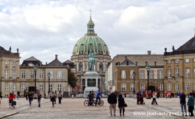 Naszym następnym celem jest Amalienborg i Frederiksstaden – rezydencja duńskich monarchów i rodziny królewskiej. Zespół pałacowy Amalienborga składa się z czterech identycznych rokokowych pałaców, które zbudowano wokół ośmiokątnego placu. Na jego środku stoi pomnik Fryderyka V.