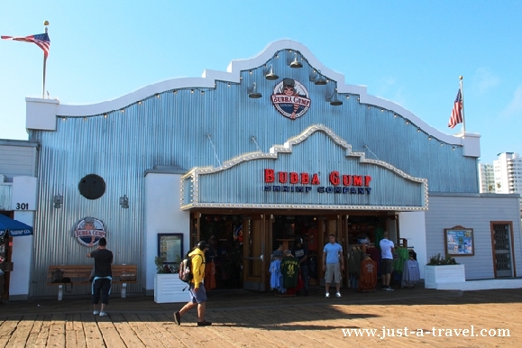 Na „Santa Monica Pier” znajduje się również „Bubba Gump Shrimp Company”– sieć restauracji, której powstanie zostało zainspirowane filmem „Forrest Gump”. Rybki i owoce morza, serwowane w restauracji czuć już na odległość, więc uwieczniamy ją na zdjęciu i ruszamy w kierunku morza.