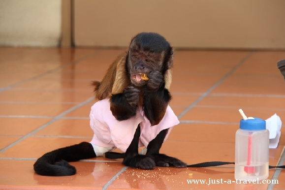 Udaje nam się sfotografować małpkę z serialu „Animal Practice” w czasie zasłużonego lunchu.