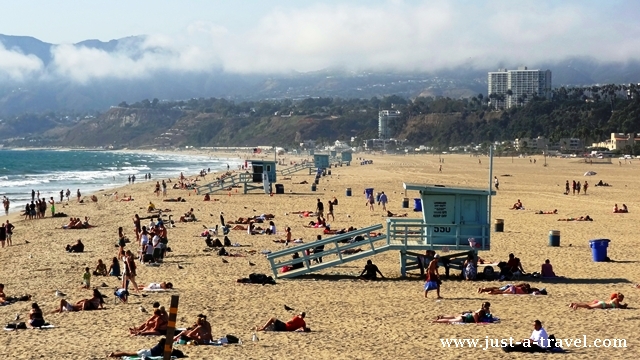 Rozpoznawalnym punktem na plaży w Santa Monica są drewniane domki ratowników, znane z amerykańskiego serialu „Słoneczny patrol”.