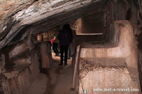 Naszym następnym celem jest Q’enqo – inkaskie sanktuarium, zbudowane w naturalnej skale, w której grotach znajduje się ponoć grobowiec wielkiego inkaskiego władcy – Pachacuteca. Q’enqo to istny labirynt. Przeciskamy się przez jego ciasne i ciemne korytarze, aż dochodzimy do jednego z ołtarzy ofiarnych Inków. Niskie temperatury panujące w grotach dawały wyśmienite warunki do mumifikacji zwłok.