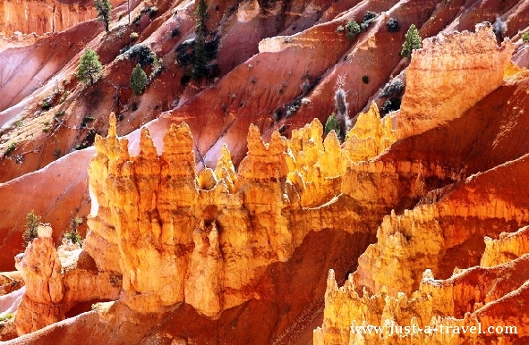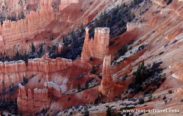 Bryce Canyon wcale nie jest kanionem, ponieważ nie płynie przez niego rzeka. Jest niecką, mającą kształt amfiteatru, w której zasiadają fantastyczne postacie. Wzdłuż jego górnej krawędzi biegnie szczególnie malowniczy szlak, z którego punktów widokowych obserwować można ten czarujący cud natury.