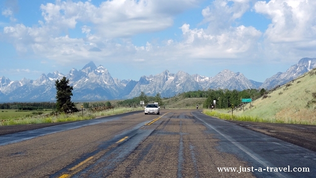 Nagle z rozległej doliny wyrósł przed nami wielki masyw górski ze szpiczastymi wierzchołkami, pokrytymi wiecznym śniegiem. U ich podnóża rozciągało się krystalicznie czyste jezioro. Po blisko 3 tysiącach kilometrów przez USA dojechaliśmy do Parku Narodowego Grand Teton.