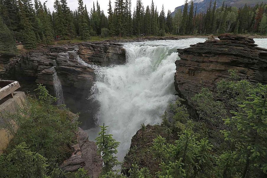 Park Narodowy Jasper słynie również z przepięknych wodospadów. Najbardziej urzekły nas Wodospady Athabasca. Znane one są z potężnej mocy, która wydrążyła w bazaltowych skałach wąski kanion. Zwolennicy raftingu dopłynąć mogą stąd do miasteczka Jasper.