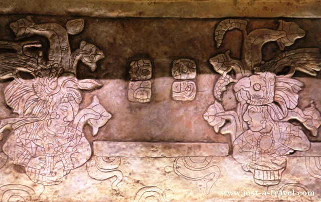 Postać, wyrzeżbiona w kamieniu na sarkofagu Pakala