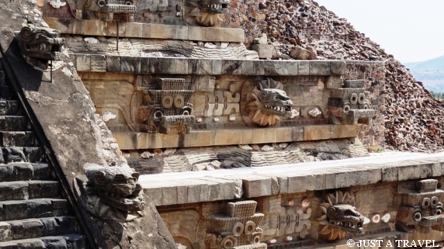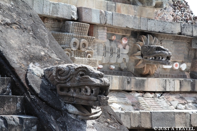 Z Piramidy Księzyca kierujemy się Aleją Zmarłych ku Cytadeli z Świątynią Quetzacoatla – Pierzastego Węża. Ściany świątyni ozdobione są licznymi rzeźbami, wyobrażającymi głowy bogów Quetzalcoatla i Tlaloca – boga deszczu.