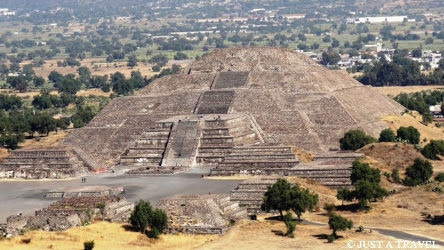 Na Piramidę Księżyca prowadzą wąskie, wysokie stopnie. Dla turystów dostępny jest tylko pierwszy taras piramidy. Rozciąga się z niego piękny widok na cały Teotihuacan i okolice.