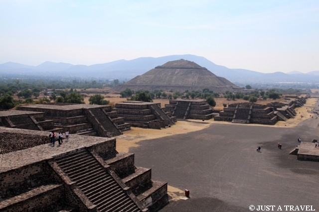Teotihuacan został zbudowany wzdłuż szerokiej „Alei Zmarłych”, która ciągnie się ponad 2 kilometry od Piramidy Księżyca aż do Cytadeli ze słynną Piramidą Quetzalcoatl. Zwiedzanie ruin miasta zaczynamy od Piramidy Słońca – trzeciej, co do wielkości piramidy na świecie. Pod piramidą znajduje się system tuneli i komór. To właśnie tutaj miał powstać świat. Na szczyt piramidy prowadzi 244 schodków. Przy zrównaniu nocy z dniem piramida przyciąga tysiące turystów, pragnących złapać szczególną dawkę energii. W tunelach piramidy badacze odkryli szkielety ludzkie, niektóre z nich to szczątki niemowląt. Przypuszcza się, że są to ofiary, które zostały złożone w ramach rytuału poświęcenia budowy. Rytualne ofiary z ludzi, to zjawisko powszechne wśród prekolumbijskich cywilizacji.