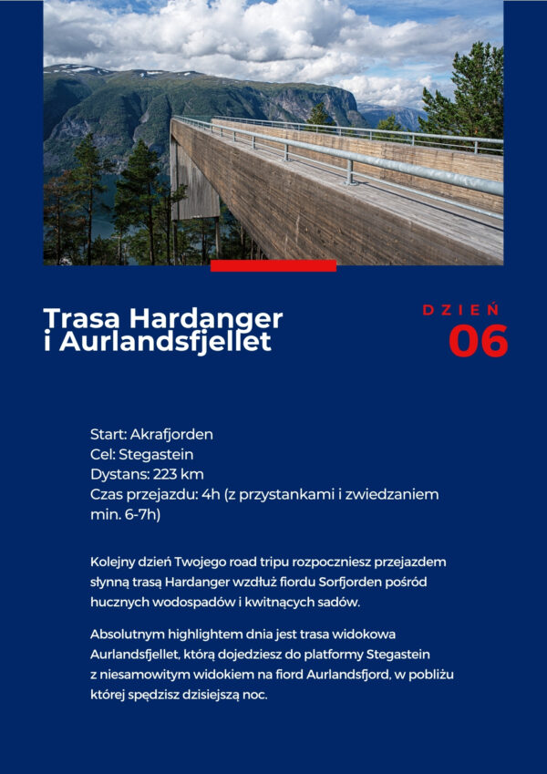 86 strony, informacje praktyczne, szczegółowy plan podróży na 14-dniowy road trip po fiordach południowo-zachodniej Norwegii