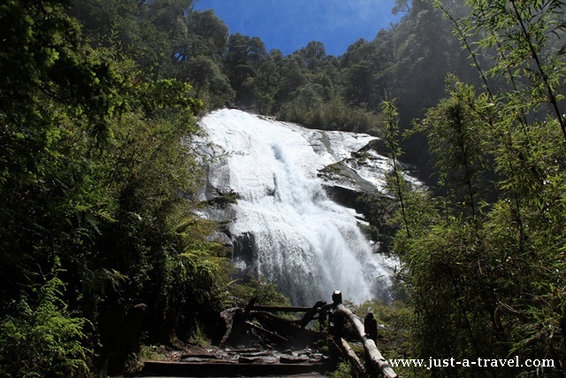 I tak wspinamy się szlakiem Los Lagos, wdychając cynamonowy zapach drzew canelo, pod parasolem araukarii, aż dochodzimy do huczącego wodospadu Nido de Aguila, który orzeźwia nasze spocone ciała chłodnym prysznicem.