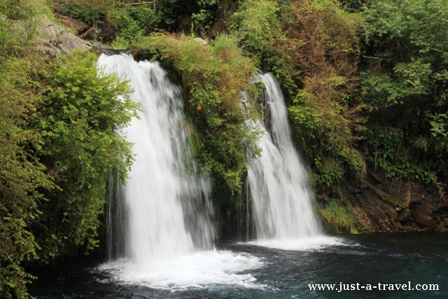 Nasze pierwsze kroki kierujemy do Ojos del Caburgua, malowniczego kompleksu wodospadów, spadających z wysokości 15-20 metrów do rwącej rzeki. Punkty widokowe wokół wodospadów połączone są mostkami i kameralną ścieżką. Na drugą stronę rzeki przechodzimy po wąskim konarze.