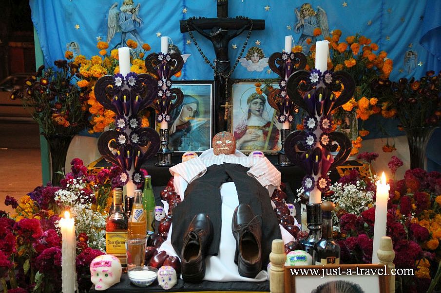 W Święto Zmarłych na meksykańskich cmentarzach spotkać można całe rodziny, radośnie biesiadujące wokół nagrobków zmarłych. Wspominają one swoich przodków, szykując dla nich fiestę i przynosząc na ich grób to, co lubili za życia najbardziej. Jeśli zmarły lubił tequilę i namiętnie palił papierosy, przynosi mu się butelkę tequili i paczkę papierosów. Odwiedzający cmentarze dzielą się tam posiłkiem, grają na instrumentach, śpiewają, a nawet tańczą. Jest to dzień, w który zmarli wracają na ziemię, aby spotkać się z bliskimi i wspólnie z nimi świętować.