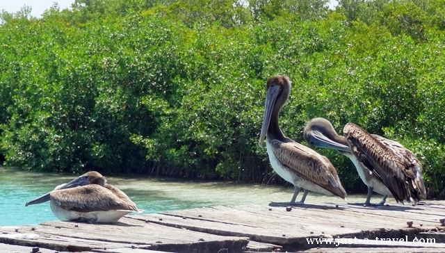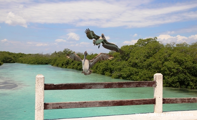 Miejsce, gdzie narodziło się niebo, – bo tak w języku Majów brzmi nazwa Sian Ka’an, zniewala nas swoim nietykalnym krajobrazem. Nagle trafiamy na stado pelikanów, które nic sobie nie robią z naszego towarzystwa.