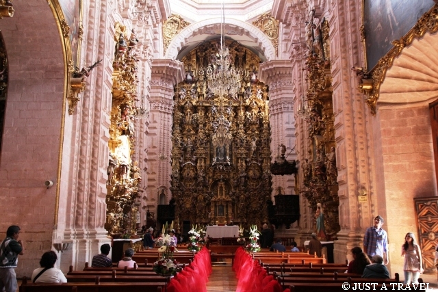 Kościół ufundował miastu w latach 1751 – 1758 Jose de la Bordo – najbogatszy człowiek ówczesnego Meksyku, który zbił majątek na kopalniach srebra w Taxco. Santa Prisca zbudowana jest z różowego kamienia w stylu kolonialnym, a jej wnętrze wręcz ocieka złotem. Do jego budowy zużyto ponad 23 tony tego kruszca!