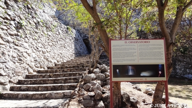 Następnym tajemniczym obiektem Xochicalco jest podziemne obserwatorium astronomiczne, zbudowane na bazie jaskini z skonstruowanym, sześciokątnym, 8 metrowym kominem, przez który nocą obserwowano gwiazdy. Dwa razy do roku 14/15 maja i 28/29 lipca, kiedy słońce znajduje się w zenicie, mroczną jaskinię wypełnia oślepiające światło. Przypuszcza się, że obserwatorium było używane do określenia okresu siewu i żniw.