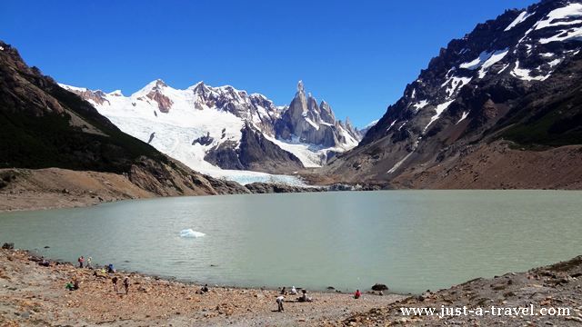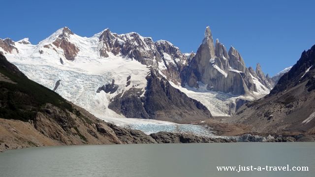 Przed nami Cerro Torre o wysokości 3133 m. n.p.m, który wyrasta prosto z laguny ku niebu. Miał zostać on zdobyty po raz pierwszy w 1959 roku przez alpinistów Cesare Maestri i Toni Eggera. Egger nigdy nie wrócił ze szczytu. A jego zdobycie przez Maestri’ego jest wątpliwe, gdyż w drodze na szczyt nie znaleziono żadnych znaków wspinaczki.