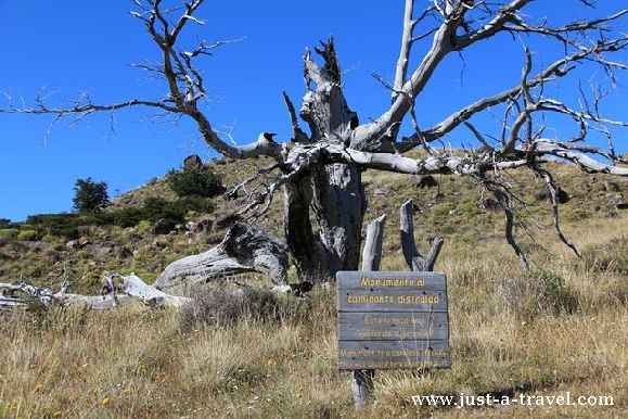 Kiedy docieramy do punktu widokowego Mirador Torre przed nami rozpościera się widok na masyw Torre, skalne iglice i otaczający je lodowiec. Stąd mamy jeszcze jakieś dwie godziny wędrówki do naszego celu. Spotykamy tam pierwszych turystów, którzy o dziwo nerwowo okładają się jakimiś gałązkami. Pielgrzymi, czy co?