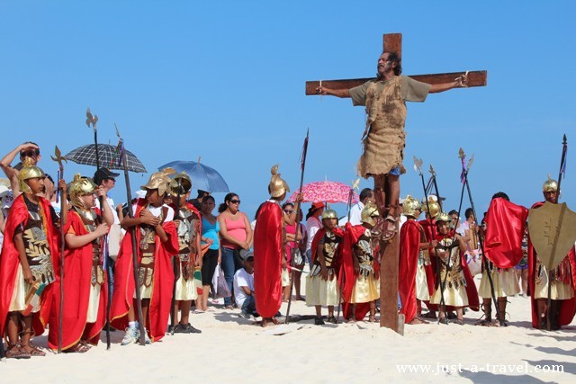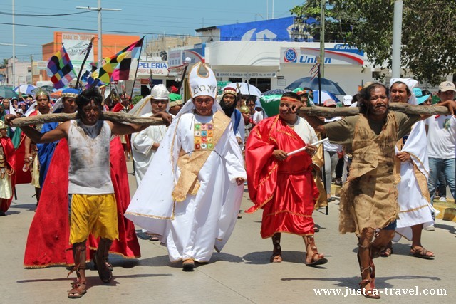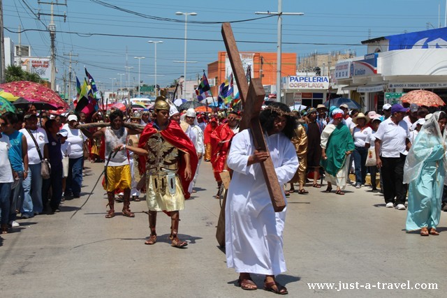 Udział w Via Crusis, czyli drodze krzyżowej był dla nas fascynującym doświadczeniem. Podczas gdy połowa miasta Playa del Carmen upijała się w zatłoczonych i głośnych beach clubach, druga część wzięła udział w spektaklu, który zakończył się ukrzyżowaniem Jezusa na głównej plaży miasta. Święta Wielkiej Nocy to czas bogaty w tradycje i największe święto w Meksyku.