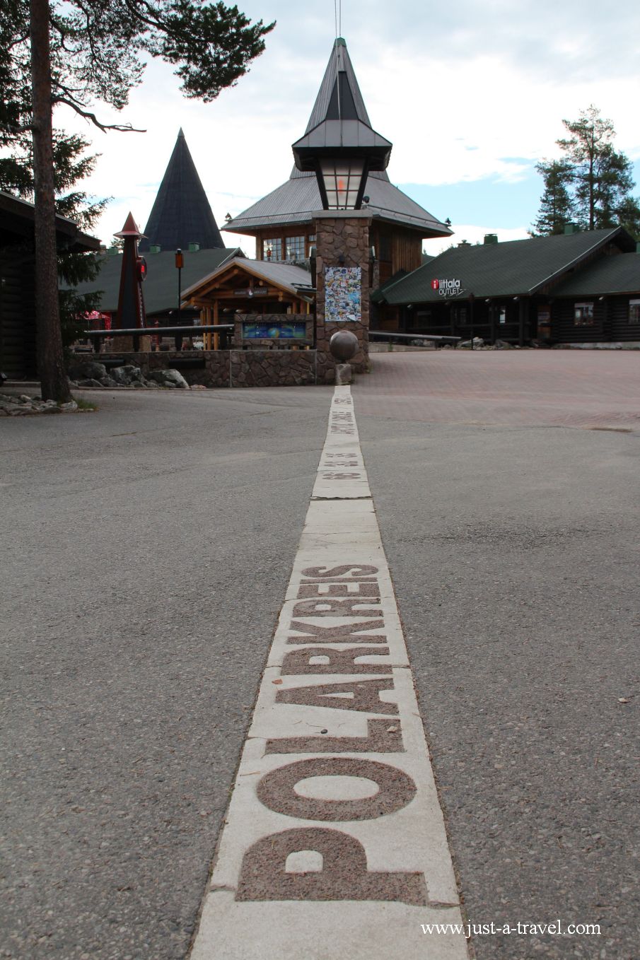 Niewątpliwą atrakcją wioski Świętego Mikołaja jest przebiegająca przez wioskę granica koła podbiegunowego. Latem występuje tutaj wówczas tzw. dzień polarny a zimą noc polarna. Innymi słowy w miesiącach letnich słońce nigdy nie zachodzi i przez 24 godziny na dobę jest widno. Natomiast w miesiącach zimowych robi się nieprzyjemnie, bo słońce nie wschodzi i cały dzień jest ciemno. Na samym biegunie północnym dzień polarny i noc polarna trają po 6 miesięcy. Tak więc słońce wschodzi i zachodzi tutaj raz w roku. Więcej o tym fenomenalnym zjawisku napiszę jak dotrzemy do Nordkap – Przylądku Północnego, uchodzącego za najdalej na północ wysunięty punkt Europy.