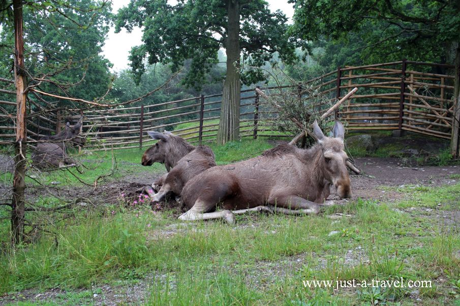 Na terenie Skansenu znajduje się również ogród zoologiczny, w którym spotykamy leniwe łosie.