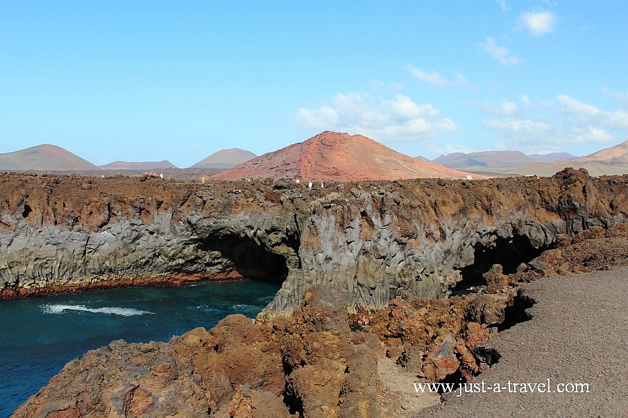 Po zwiedzeniu Parku Timanfaya kierujemy się w stronę wybrzeża do Los Hervideros, gdzie można zobaczyć wspaniałe formacje utworzone przez lawę, która dosłownie wlewa się do oceanu. Gorąca lawa z wulkanów w zderzeniu z zimnymi wodami oceanu uformowała podwodne jaskinie, z których eksplodują wodne gejzery.