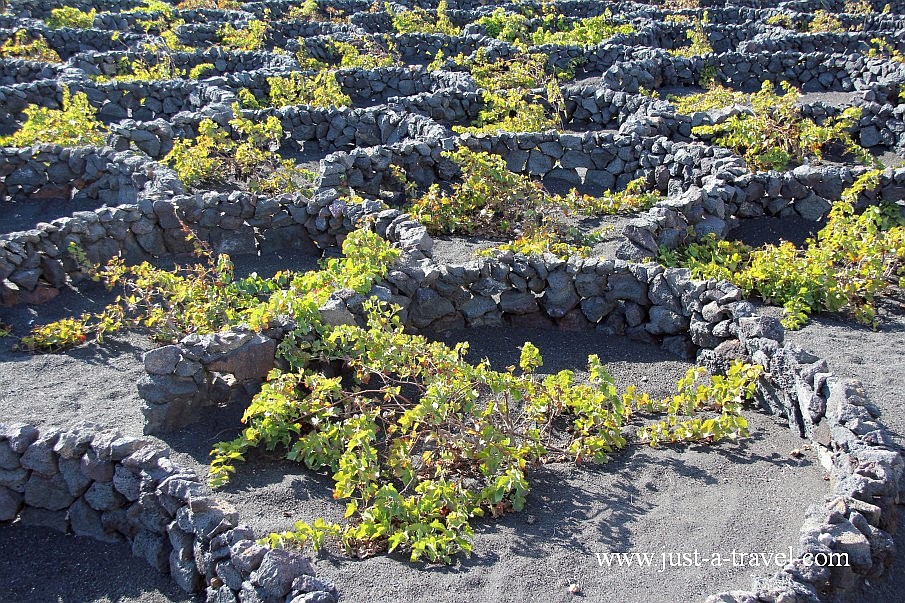 Kiedy to lawa pokryła najżyźniejsze tereny Lanzarote wydawać by się mogło, że na terenach zalanych przez lawę, nie będzie można już nic uprawiać. Przeciwnie! Rolnicy szybko odkryli, ze popiół z wulkanów jest wspaniałym podłożem do uprawy roślin a ziarenka lawy świetnie magazynują wodę. Tak powstały wyśmienite winnice i niespotykany sposób produkcji wina. Aby ochronić winorośla przed srogim wiatrem, sadzone są one z zakołach utworzonych z wulkanicznych kamieni.