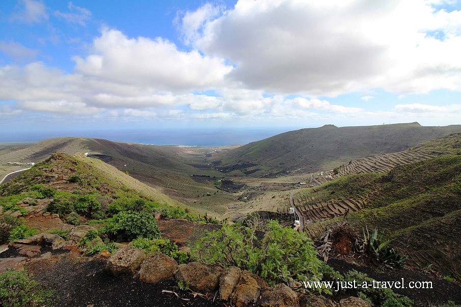 Podróżując na południe wyspy Lanzarote mijamy zapierające dech w piersiach krajobrazy. Sama wyspa jest bardzo górzysta. Z jednego z jej szczytów można dostrzec zarówno jej zachodni jak i wschodni koniec.