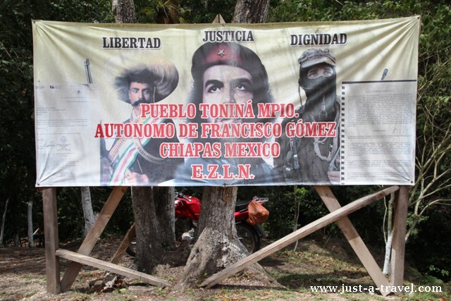 „Zapata vive, la lucha sigue” – “Zapata żyje, walka trwa” – głosi jeden z szyldów E.Z.L.N. – Zapatystowskiej Armii Wyzwolenia Narodowego. Jesteśmy na terenie Zapatystów z Chiapas – zbrojnej grupy rewolucyjnej, walczącej o prawa ubogich Indian. Nazwa Zapatyści jest nawiązaniem do Emiliano Zapata, jednego z historycznych przywódców rewolucji meksykańskiej, którego tradycję kontynuuje E.Z.L.N.